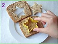 取喜欢的饼干模具在土司中间压出镂空形状;