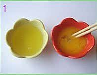 将鸡蛋的蛋黄、蛋白分开,稍稍打散;