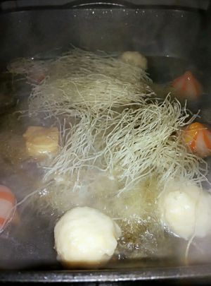 水烧开加入米粉条用锅铲压下去继续加盖煮上3分钟(米粉不易烂根据实际情况增加时间)
