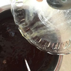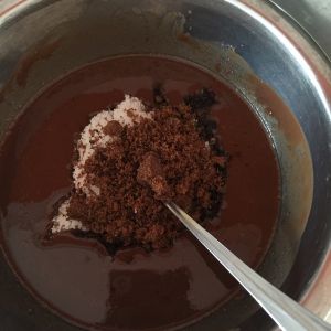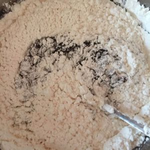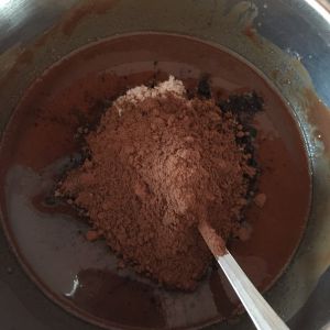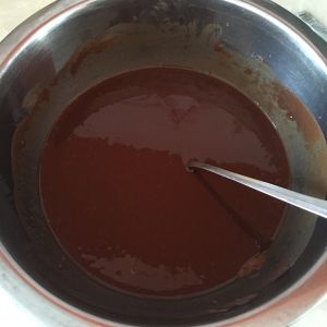 筛入低筋面粉,至液体浓稠,但是可以流动的状态