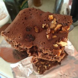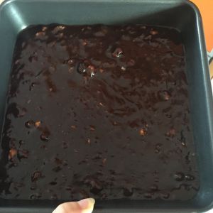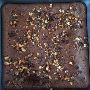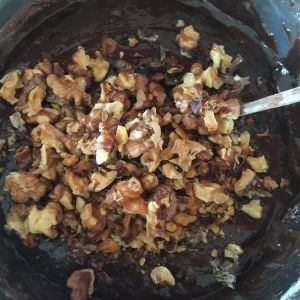在表面撒核桃碎,烤箱180度25分钟(根据自己家烤箱功率,随时观察布朗尼状态)