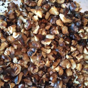 核桃仁放烤盘上烤酥脆,出香味即可。不要烤糊
