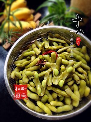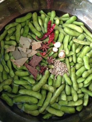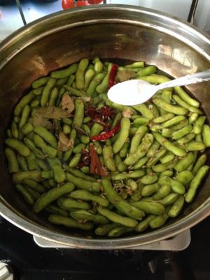 放入大料,开火煮熟。不盖锅盖毛豆色泽就漂亮一些~