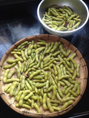 太阳大,把毛豆拿去晒干。也可以速成,使用烤箱~