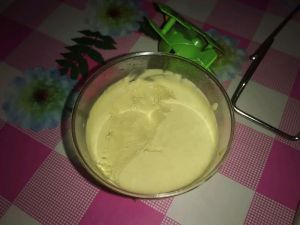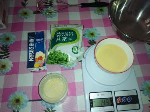 将炼乳倒在打发好的奶油搅拌均匀,装在自己钟意的容器冷冻两小时。