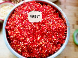 鲜辣椒切碎(记得带手套或用料理机呦!)
