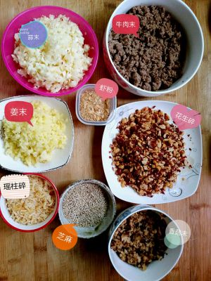 其他材料都切碎,把牛肉末单独炒一下盛出