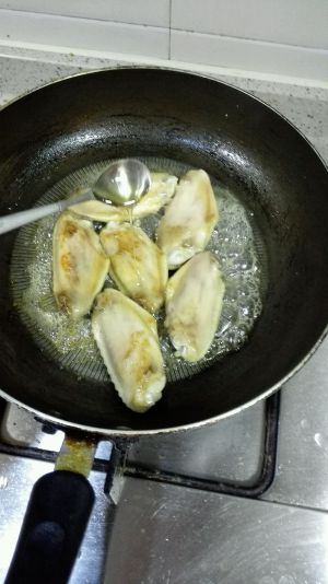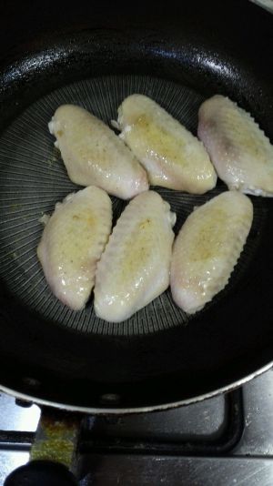 第一步:小火香煎翅中,祛除水分,不用放油。
