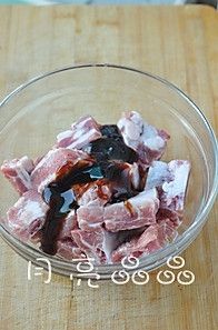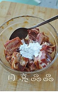 再加入少许淀粉拌匀,量以能薄薄的包裹在排骨表面为宜(这里我加了平平的一汤匙)。