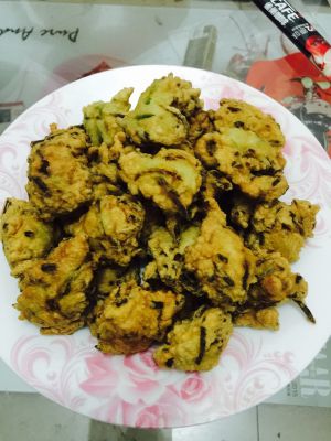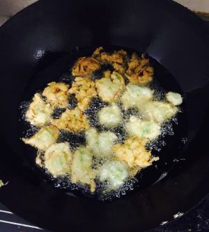 锅里倒入油加热至七成熟,用勺子挖面糊放入锅里,炸至两面金黄出锅