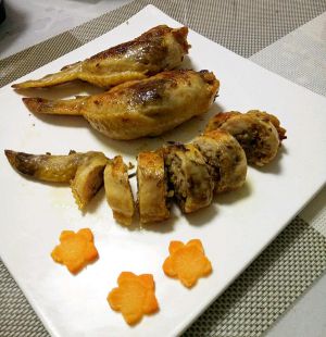 忘记拍米饭的成品了…鸡翅灌米饭的时候最好用漏斗…手工的真心太难…下次记得买漏斗…灌好后放进电饼铛…煎到两年金黄…