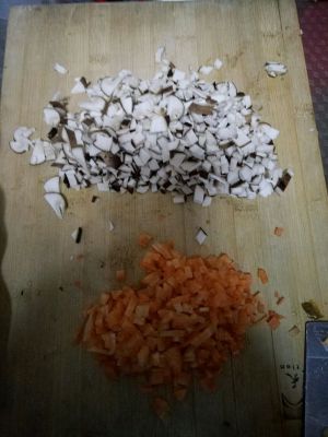 胡萝卜…香菇…葱花…切成米…下锅爆炒…放酱油和蚝油…放米饭