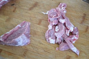 锅烧热,倒入大量的油,烧到8分热,加入适量的盐,再倒入肉炸制,炸到金黄色捞出。