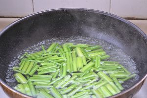 锅中放入芹菜,小酥肉稍微翻炒下,倒入醋,鸡精调味即可。