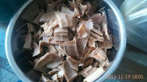 这个竹笋是干竹笋泡了两天后!再煮一下后捞出来切好备用