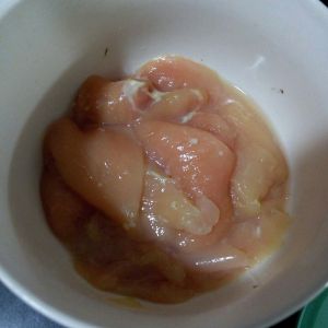 首先,将鸡排或猪排切片,最好薄一点,用适量的盐、黑胡椒、料酒腌制两小时。(猪肉或鸡肉先冻一下,好切)