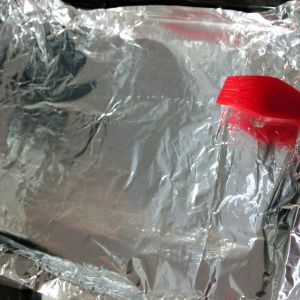 烤盘上铺好锡纸,用油刷刷上一层植物油,同时烤箱先预热五分钟,上下火200°