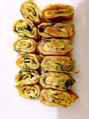 切一公分厚小段,摆盘,好吃的鸡蛋卷成功