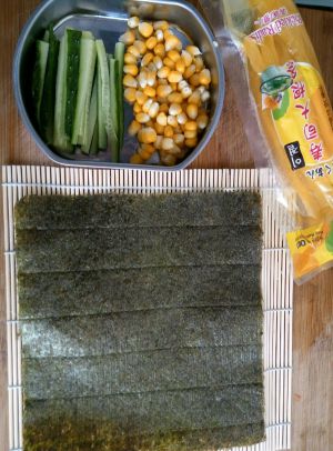 红萝卜黄瓜玉米紫菜包饭做法步骤