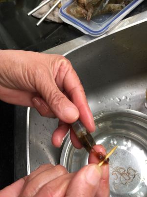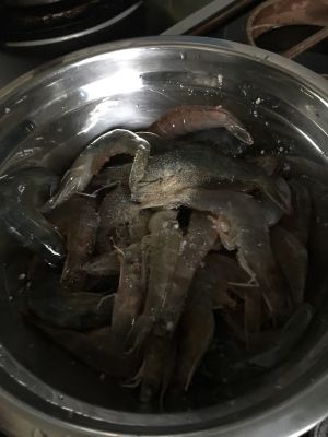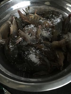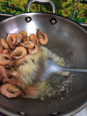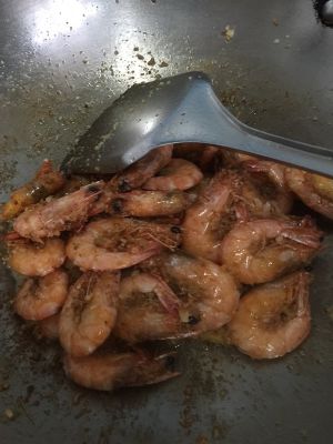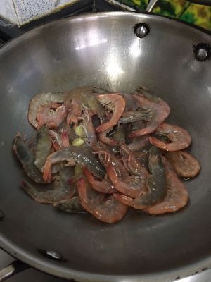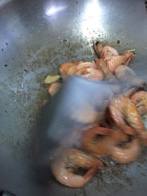 翻炒至虾壳有点脱落,这是为了使虾壳变脆