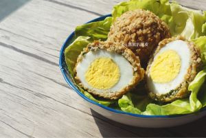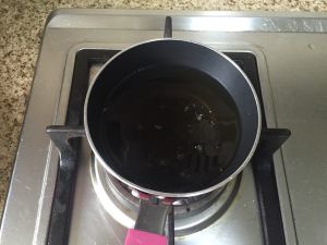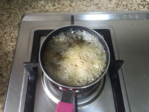然后开油锅_,用一个小锅子比较省油⋯虽然一次只能炸一个但是因为实际肉糜并不厚,里面的鸡蛋是熟的所以炸到表面金黄就好了。