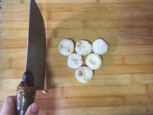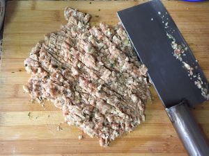 剁碎,一定要放荸荠特别好吃。不知道苏格兰那边放不放⋯⋯反正我大扬州狮子头要放哈哈哈。