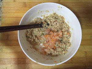 加入了一点儿胡萝卜为了好看。全部拌匀。可以加入自己喜欢的香料比如我喜欢黑胡椒啥的。