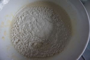 低筋面粉过筛后倒入蛋液中继续搅拌
