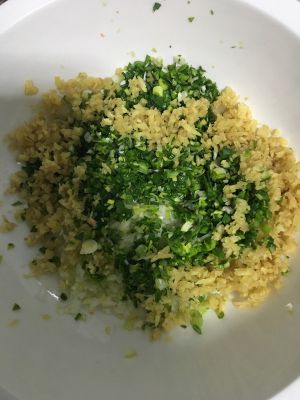 葱姜蒜苗剁碎(蒜苗是提鲜的)