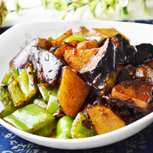 食材洗净 土豆切厚片 茄子尖椒切滚刀块