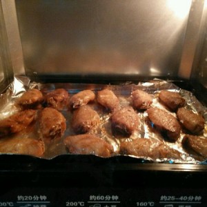 取出,在烤盆上铺上箔纸。将鸡翅放在上面