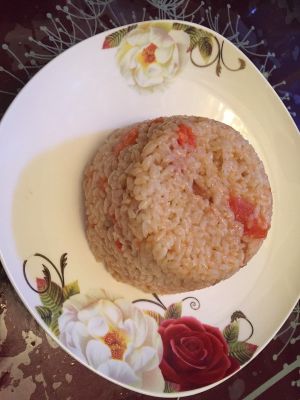 做好后,挑走番茄的皮,戳碎,拌匀。