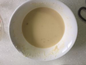 面粉加水、少量盐、鸡蛋,搅拌成能够挂起的面糊。