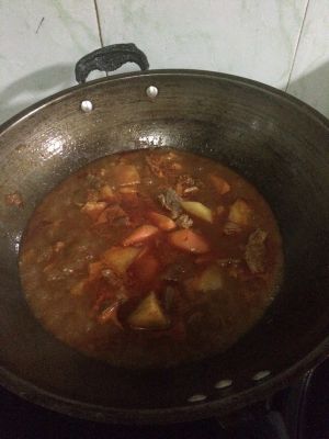 加入牛腩,咖喱,清水,煮15分钟左右。