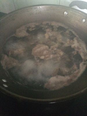 冷水下锅,煮开,去浮沫,开锅小煮一会儿。捞出备用。
