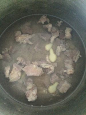 我偷懒,牛腩放入高压锅,放入姜片,料酒,一点点醋,直接高压锅半小时压烂。