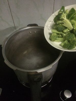 青椒,西兰花容易变黄,在这时用另外的锅清水焯熟。
