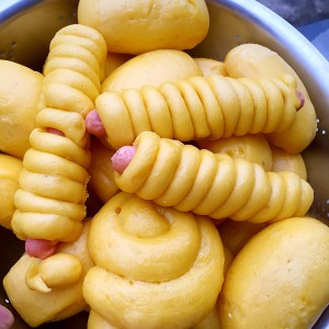 5.把发酵好的面团分成若干块,做成自己想做的花样!