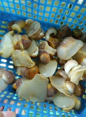 香螺反复揉搓,去掉泥沙及表面污垢。