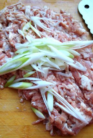加葱丝,剁成肉馅