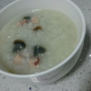 加入火腿,皮蛋,盐,鸡精,变稠关火就好了,外面的不如自己做的健康