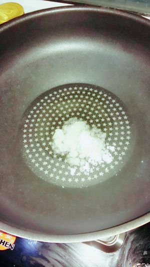 把糖熬融化,熬至糖变棕色,略微棕色冒烟