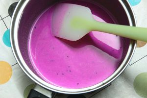 粉色层(表层):放置稍凉后倒入模具中,盖好放冰箱冷藏1~2个小时至凝固。