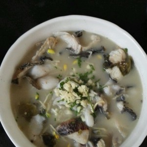 放入豆芽菜,刚刚捞出的鱼肚子,盐糖调味,煮开放入腌制的鱼片,煮开马上出锅
