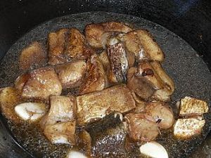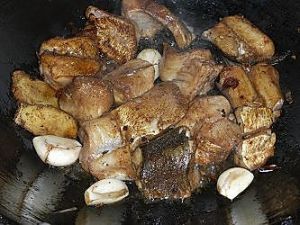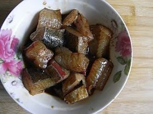 花鲢尾段切块加老抽、料酒腌渍二十分钟。