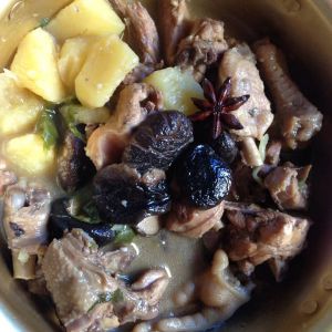 加入水没过鸡肉,大火煮开后调小火慢炖,炖至汤汁差不多收完,加入葱段,出锅