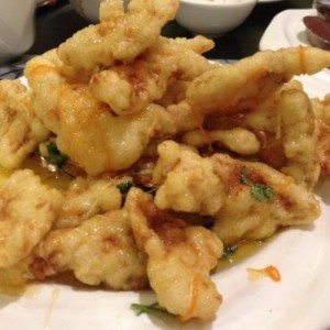 新鲜的猪里脊肉改刀成7厘米长、5厘米宽、0.2厘米厚的大片,用精盐、料酒拌腌制15分钟。再把腌好的肉上沾满干淀粉,用水淀粉及少许色拉油调成稠糊;另用酱油、白糖、醋、味精、鲜汤、水淀粉等对成滋汁。