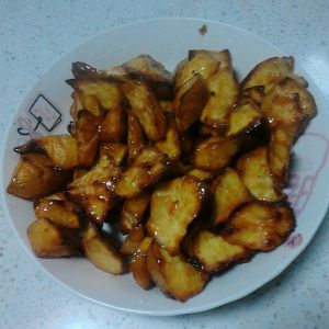 最后将炸好的红薯倒进去翻炒,糖色上匀关火。