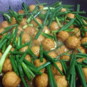香喷喷的咖喱鱼蛋熟透了,在盛起时下点葱短!