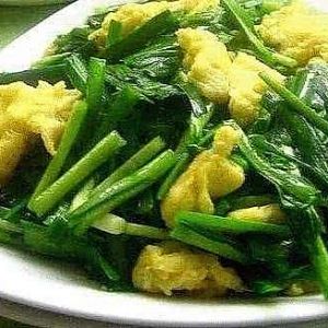 锅内放油,七八成热放入韭菜后迅速将蛋液倒入快速翻炒。
